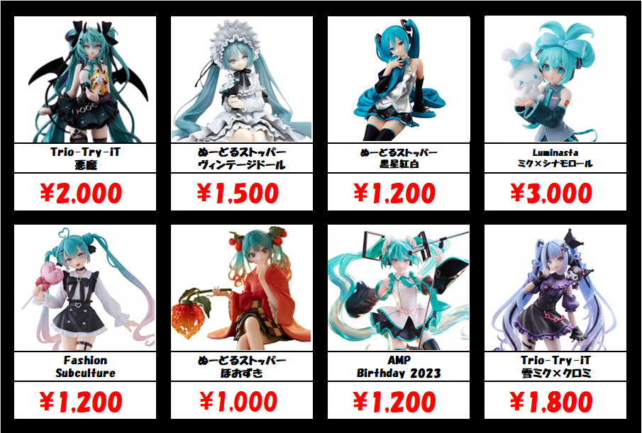 | 15th Anniversary KEI ver. ミクスーパープレミアムフィギュアみく すーぱーぷれみあむふぃぎゅあ きー | ¥500 | 4/6 |