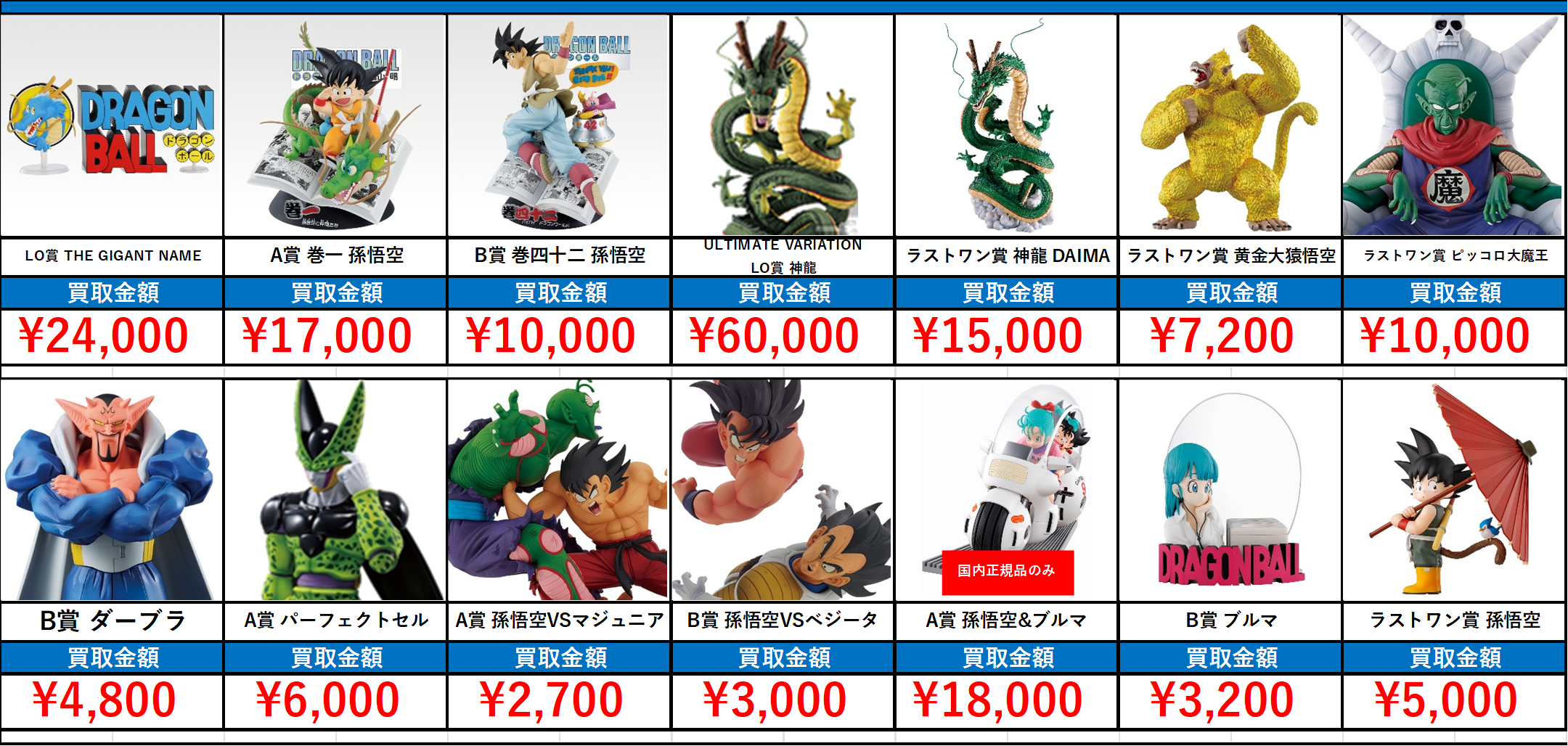 | ラストワン賞 THE GIGANT NAME ASSEMBLE COLLECTION 孫悟空少年期編ざ ぎがんと ねーむ あっせんぶるこれくしょん そんごくうしょうねんきへん | 価格上昇中!! | ¥24,000 | 1/25 |