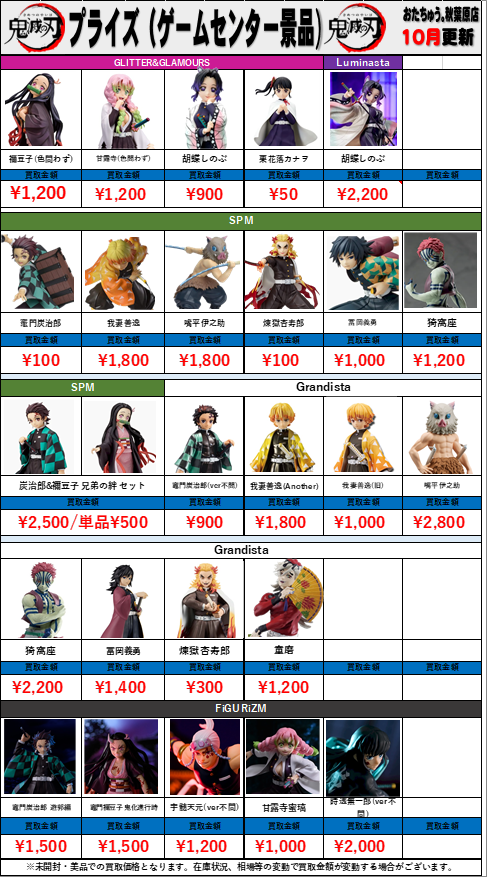 鬼滅の刃 プライズ(ゲームセンター景品)買取金額 全国対応の宅配買取!