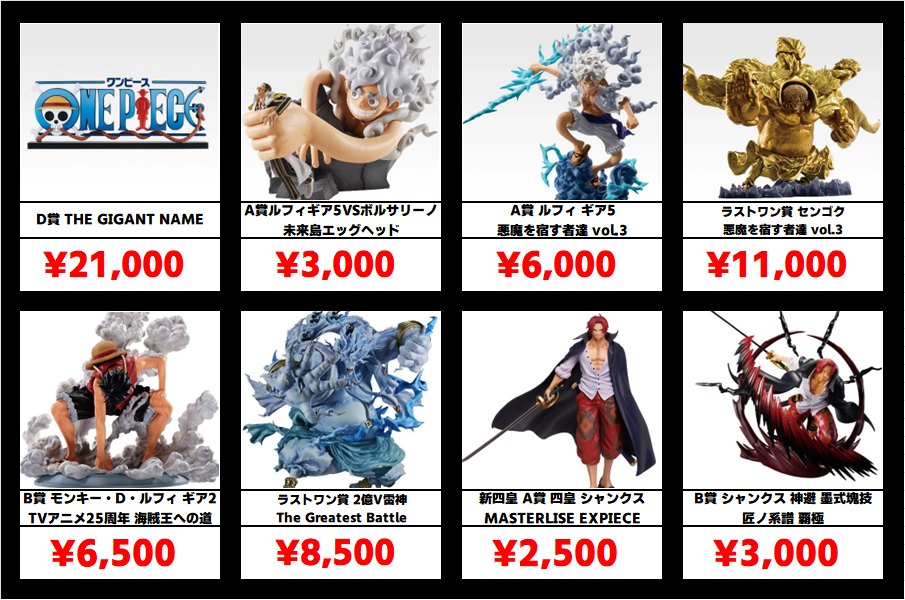 ![]() | D賞 THE GIGANT NAME ドラマティックメモリーズhttp://otachu-akiba.com/1go/wp-content/uploads/2026/01/op1_061_D.png | 価格上昇中!! | ¥21,000 | 2/22 |