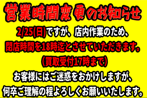 2/25【営業時間変更】のお知らせ...