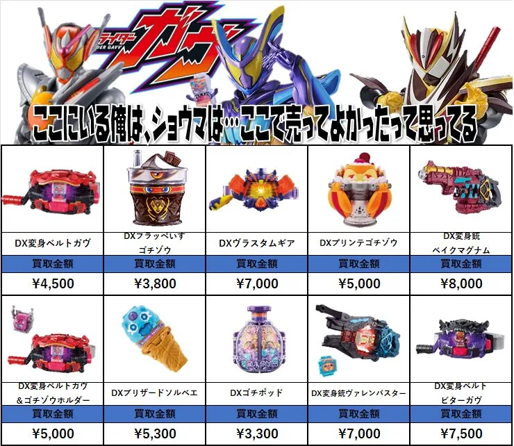 | DX変身ベルトガヴ コンプリートセット | ¥6,500 | 3/2 | 4582769687204 |