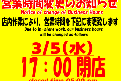 3月5日【営業時間変更のお知らせ】...