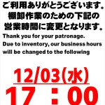 11月16日の営業時間変更のお知らせ...