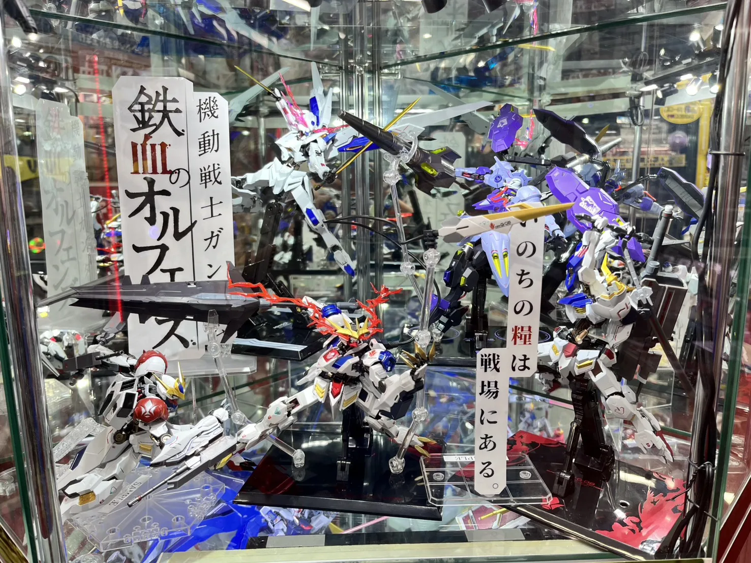 入口前ショーケースにて鉄血のオルフェンズシリーズのMETAL ROBOT魂を期間限定で展示